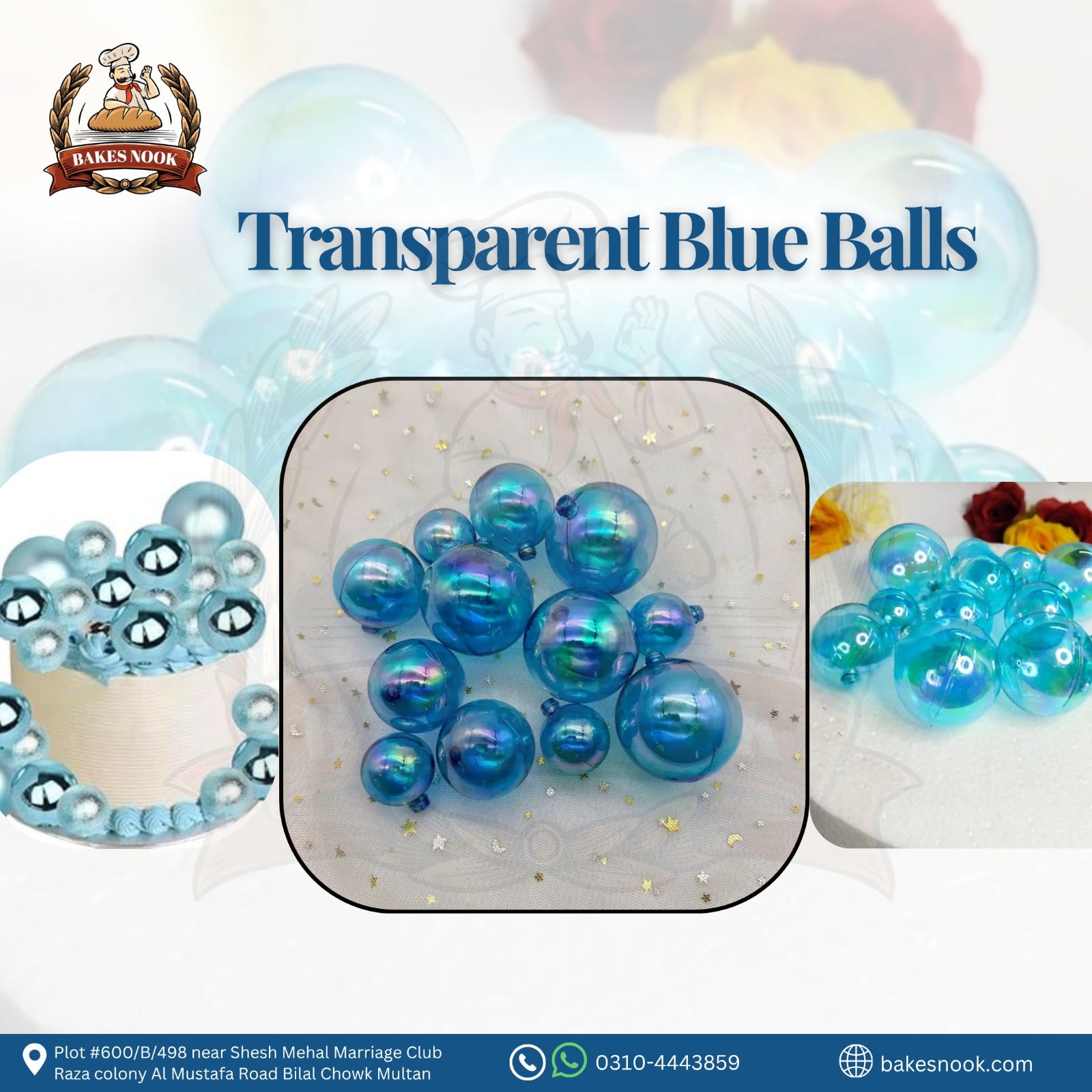 TRANSPARENT CAKE DECOR BALL BLUE